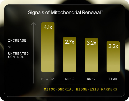 1 Data derived from a preclinical study evaluating mitochondrial biogenesis gene expression following combined Urolithin A and EGCG treatment in an Alzheimer’s disease mouse model (hAbKI mice).
